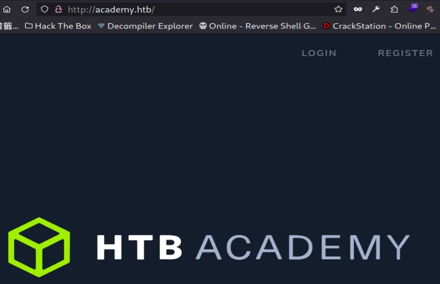 將academy.htb添加至/etc/hosts,然後訪問網站 http://academy.htb/