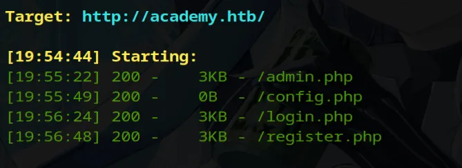 dirsearch -u http://academy.htb/ -i 200 -e php