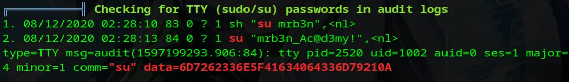 繼續使用linpeas.sh枚舉可以找到mrb3n的password