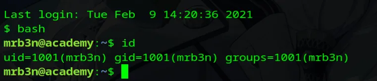 sshpass -p 'mrb3n_Ac@d3my!' ssh mrb3n@academy.htb